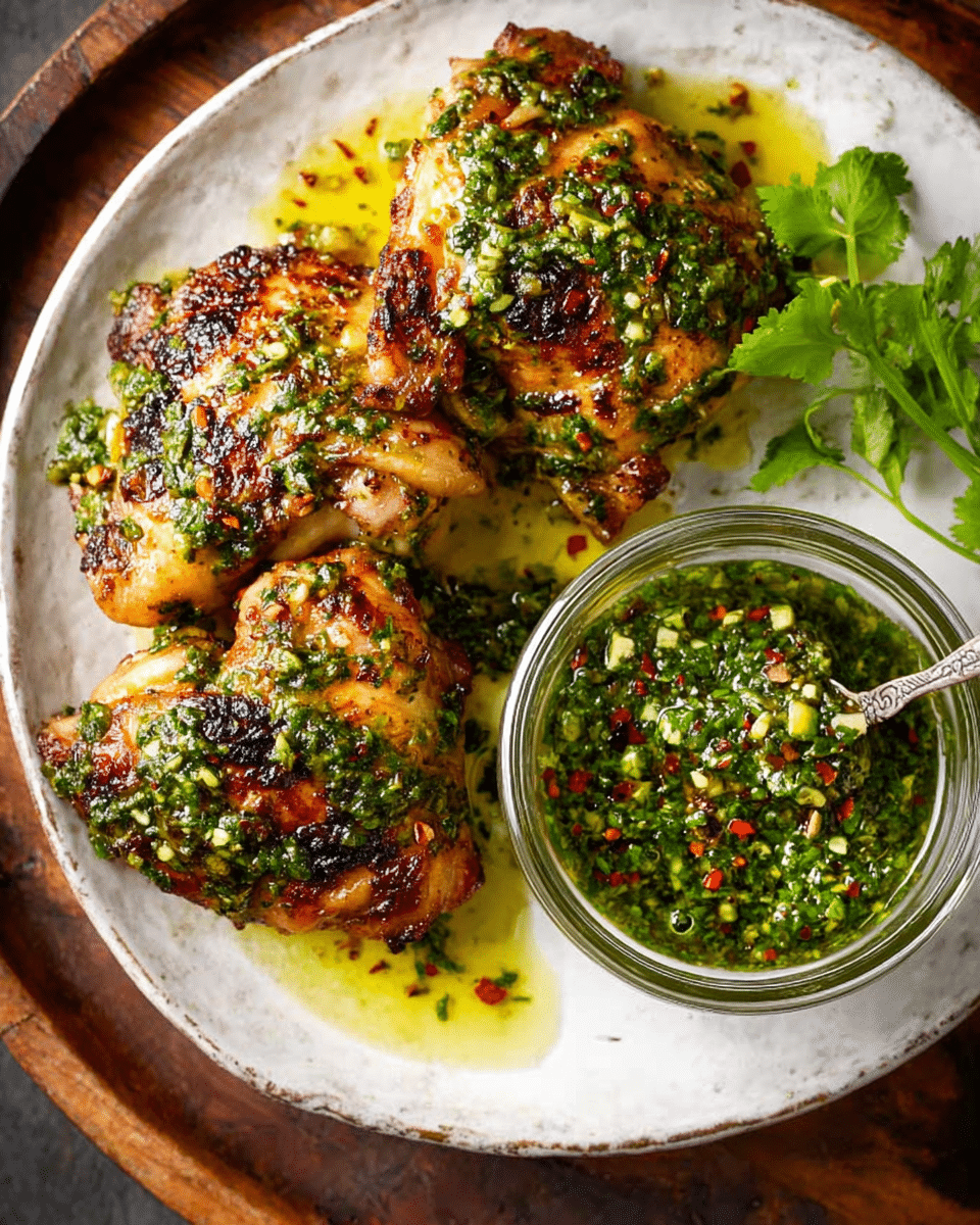 - Serve & Enjoy – Top the grilled chicken thighs with a generous spoonful of chimichurri sauce.